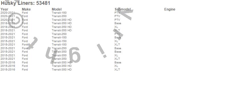 Below is an abbreviated list of applications for the X-act Contour Floor Liner.Transit-150, Transit-250, Transit-350, Transit-350 HD, Ford, 2021, 2020, 2019, 2018, 2017, 2016, 2015