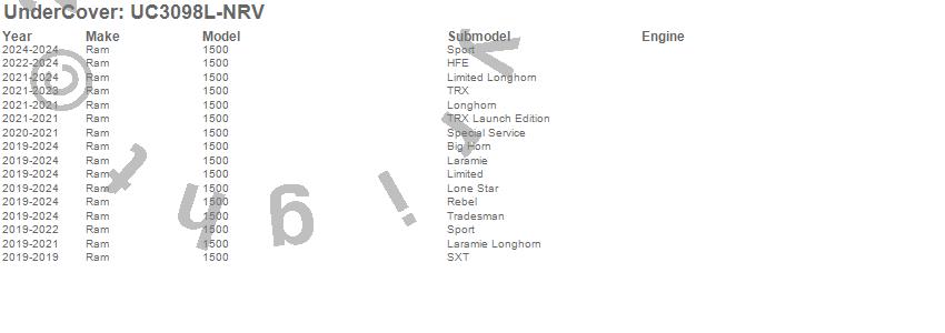 Brand: UnderCoverPart Number: UC3098L-NRVTonneau Cover Type: Velvet Red Pearl - Paint Code NRV - Will Not Fit Ram BoxUPC: 816391025825
