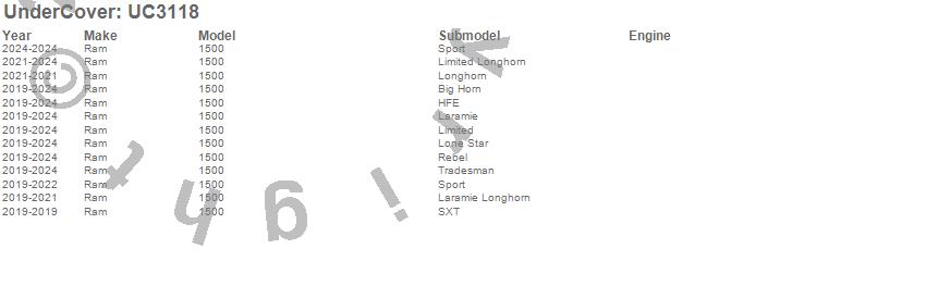 Brand: UnderCoverPart Number: UC3118Tonneau Cover Type: Black Textured - Will Not Fit Ram BoxUPC: 816391026167