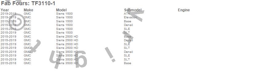 Below is an abbreviated list of applications for the Open Fender Flare.Sierra 1500, Sierra 2500 HD, Sierra 3500 HD, GMC, 2019, 2018, 2017, 2016, 2015