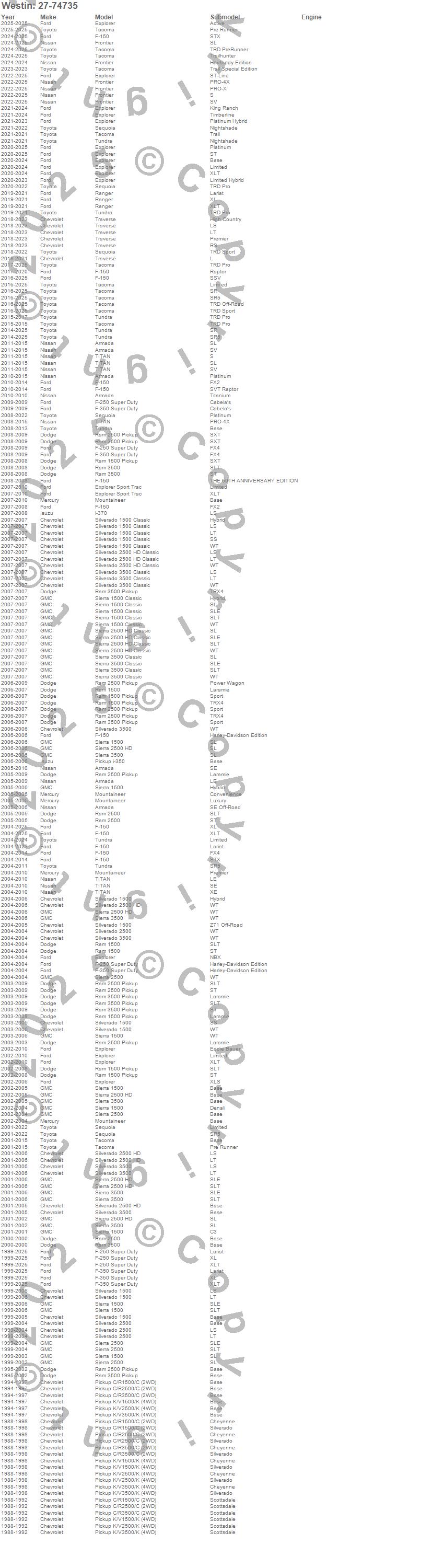 Brand: WestinPart Number: 27-74735Running Board Type: Textured Black - 79 in. - Mount Kit Not IncludedUPC: 707742094693