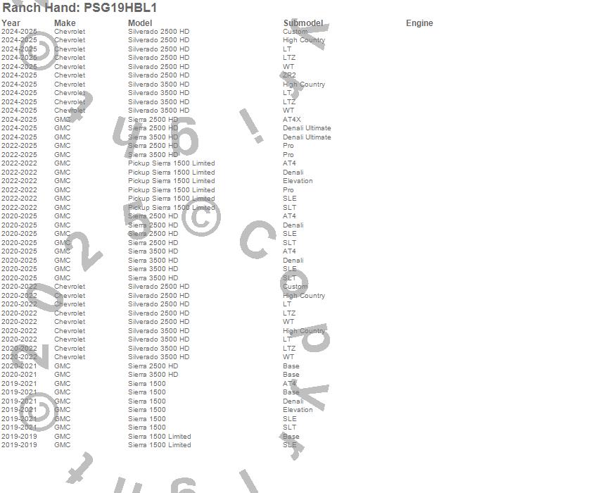 Below is an abbreviated list of applications for the Sensor Relocation Bracket.Pickup Sierra 1500 Limited, Sierra 1500, Sierra 1500 Limited, Sierra 2500 HD, Sierra 3500 HD, Silverado 2500 HD, Silverado 3500 HD, Chevrolet, GMC, 2025, 2024, 2023, 2022, 2021, 2020, 2019