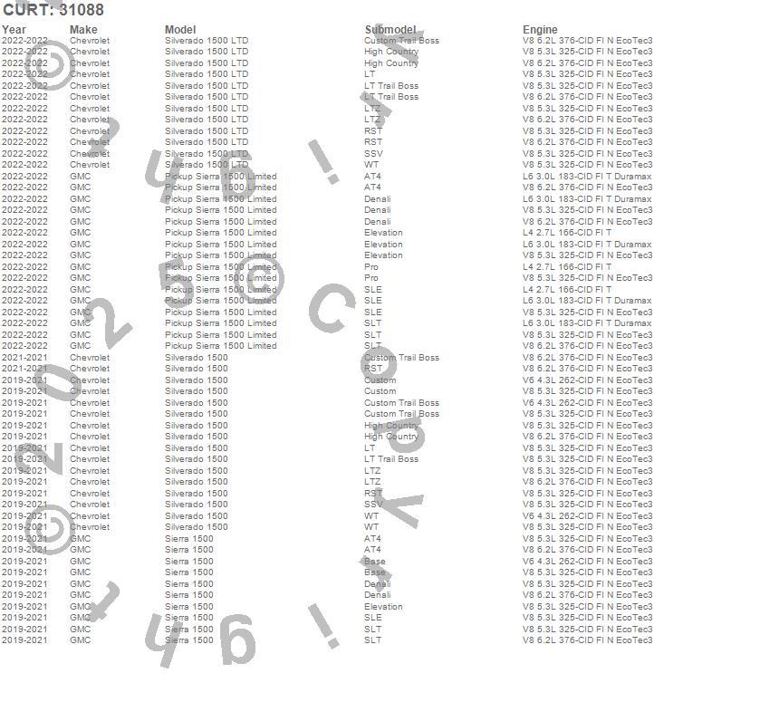 Below is an abbreviated list of applications for the 2 in. Receiver Hitch.Pickup Sierra 1500 Limited, Sierra 1500, Silverado 1500, Silverado 1500 LTD, Chevrolet, GMC, 2022, 2021, 2020, 2019