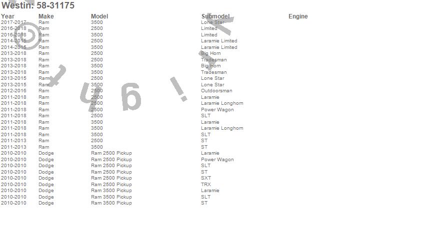 Brand: WestinPart Number: 58-31175Bumper- Front Type: Textured BlackUPC: 707742094112
