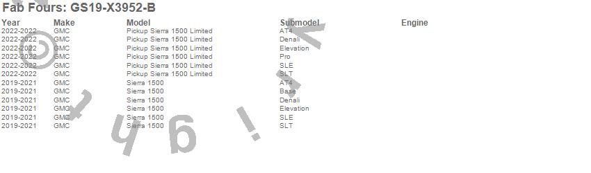 Brand: Fab FoursPart Number: GS19-X3952-BBumper- Front Type: Uncoated/Paintable - 7/8 in. D-Ring Mounts - Pre-Runner GuardUPC: 005810118808