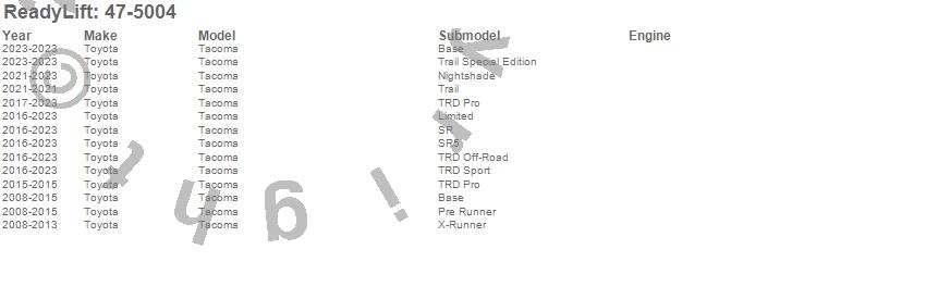 Below is an abbreviated list of applications for the Differential Drop Spacers.Tacoma, Toyota, 2023, 2022, 2021, 2020, 2019, 2018, 2017, 2016, 2015, 2014, 2013, 2012, 2011, 2010, 2009, 2008, 2007, 2006