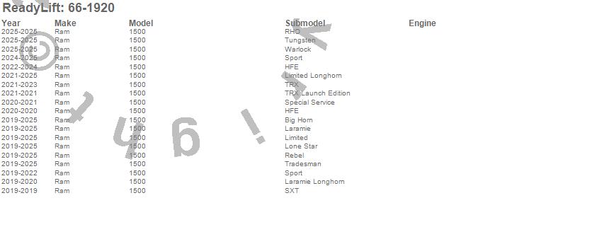 Below is an abbreviated list of applications for the Leveling Kit.1500, Ram, 2025, 2024, 2023, 2022, 2021, 2020, 2019