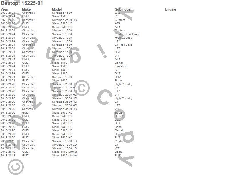 Below is an abbreviated list of applications for the EZ Fold Soft Tri-Fold Tonneau Cover.Sierra 1500, Sierra 1500 Limited, Sierra 2500 HD, Sierra 3500 HD, Silverado 1500, Silverado 1500 LD, Silverado 2500 HD, Silverado 3500 HD, Chevrolet, GMC, 2025, 2024, 2023, 2022, 2021, 2020, 2019