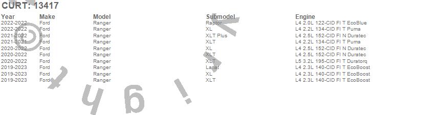 Brand: CURTPart Number: 13417Trailer Hitch Type: 6000 lbs. Gross Trailer Weight - 900 lbs. Tongue Weight - 8000 lbs. Weight Distributing - 900 lbs. Weight Distributing Tongue Weight - Square BodyUPC: 612314046904
