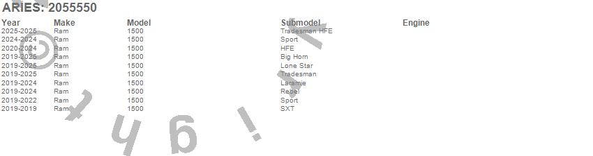 Brand: ARIESPart Number: 2055550Running Board Type: Incl. RidgeStep Running Boards And VersaTrac Brackets PN[C2875/2055117] - Textured Black Powder Coat - Carbon SteelUPC: 849055031894