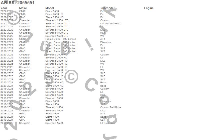 Below is an abbreviated list of applications for the RidgeStep Commercial Running Boards w/Mounting Brackets.Pickup Sierra 1500 Limited, Sierra 1500, Sierra 2500 HD, Sierra 3500 HD, Silverado 1500, Silverado 1500 LTD, Silverado 2500 HD, Silverado 3500 HD, Chevrolet, GMC, 2026, 2025, 2024, 2023, 2022, 2021, 2020, 2019