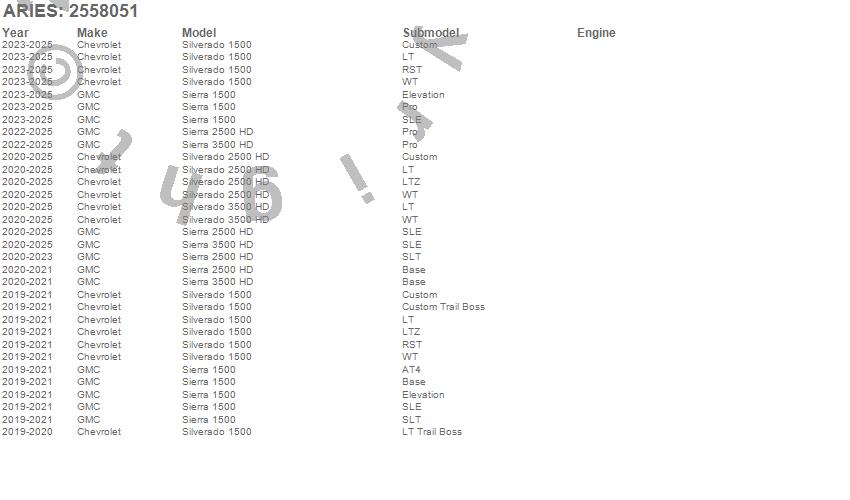 Below is an abbreviated list of applications for the AscentStep Running Boards w/Mounting Brackets.Sierra 1500, Sierra 2500 HD, Sierra 3500 HD, Silverado 1500, Silverado 2500 HD, Silverado 3500 HD, Chevrolet, GMC, 2026, 2025, 2024, 2023, 2022, 2021, 2020, 2019