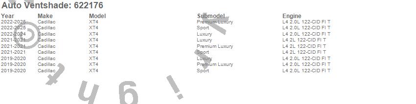 Below is an abbreviated list of applications for the Aeroskin Chrome Hood Protector.XT4, Cadillac, 2025, 2024, 2023, 2022, 2021, 2020, 2019