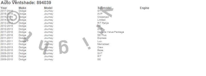 Below is an abbreviated list of applications for the Ventvisor Low Profile Deflector 4 pc..Journey, Dodge, 2019, 2018, 2017, 2016, 2015, 2014, 2013, 2012, 2011, 2010, 2009