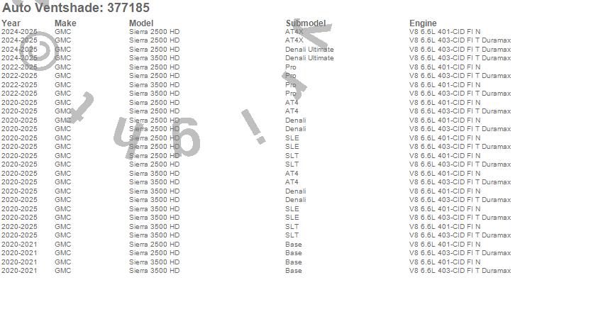 Below is an abbreviated list of applications for the Aeroskin Matte Black Hood Protector.Sierra 2500 HD, Sierra 3500 HD, GMC, 2025, 2024, 2023, 2022, 2021, 2020
