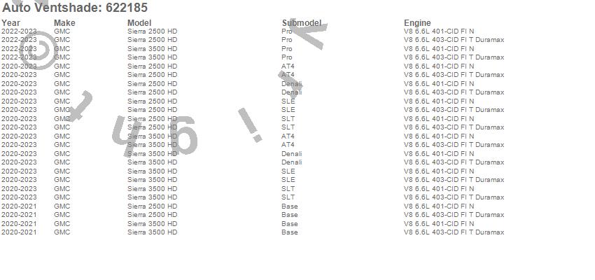 Below is an abbreviated list of applications for the Aeroskin Chrome Hood Protector.Sierra 2500 HD, Sierra 3500 HD, GMC, 2023, 2022, 2021, 2020