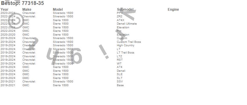 Below is an abbreviated list of applications for the Supertop For Truck.Sierra 1500, Silverado 1500, Chevrolet, GMC, 2025, 2024, 2023, 2022, 2021, 2020, 2019