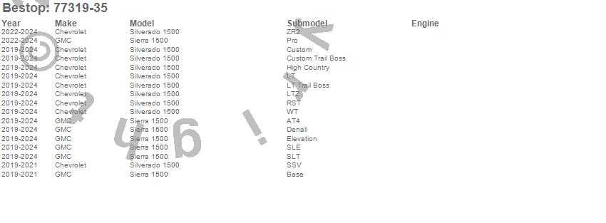 Below is an abbreviated list of applications for the Supertop For Truck.Sierra 1500, Silverado 1500, Chevrolet, GMC, 2025, 2024, 2023, 2022, 2021, 2020, 2019