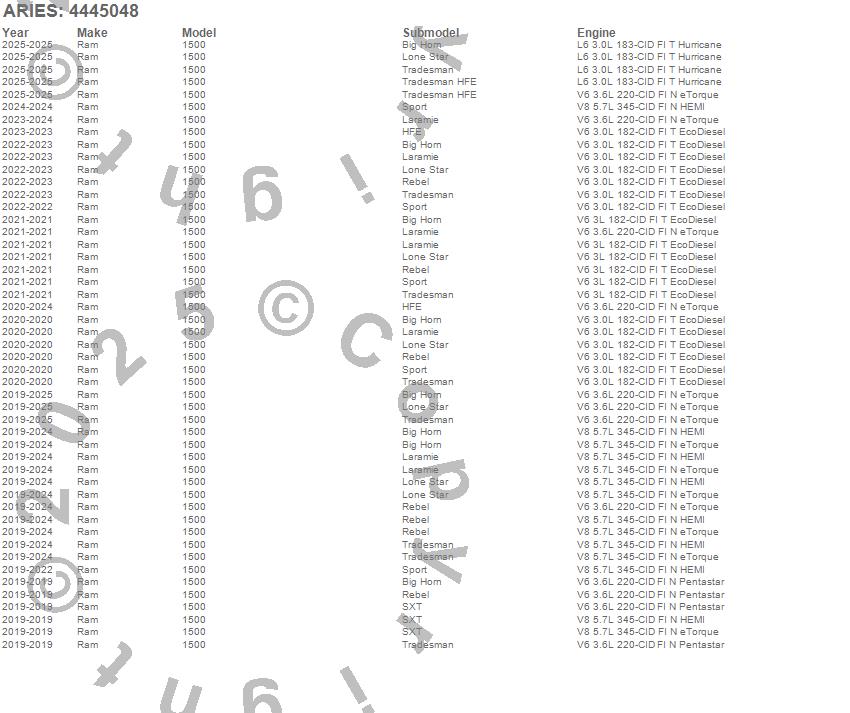 Below is an abbreviated list of applications for the The Standard 6 in. Oval Nerf Bar w/Mounting Brackets.1500, Ram, 2025, 2024, 2023, 2022, 2021, 2020, 2019