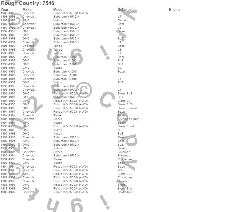 Brand: Rough CountryPart Number: 7546Control Arm Type: For 2-3 in. Lift - Incl. Moog Ball Joints - BushingsUPC: 843030114107