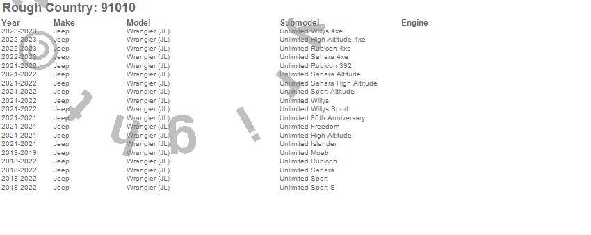 Brand: Rough CountryPart Number: 91010Seat Cover Type: Incl. [2] Front Seat Covers - [2] Rear Seat Covers - [4] Headrest Covers - Neoprene - BlackUPC: 843030132927