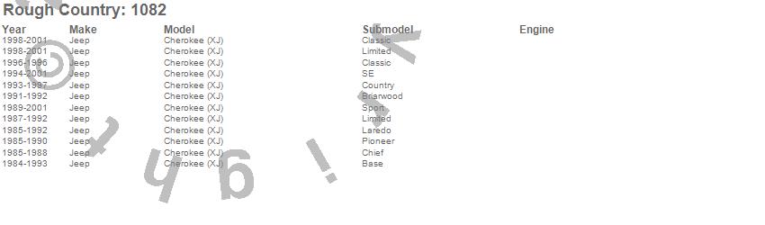 Brand: Rough CountryPart Number: 1082Shock Absorber Installation Tool Type: Rear - Qty. 2 - Incl. 4 Bolts And WashersUPC: 843030100896