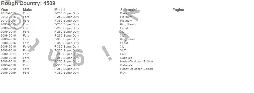 Below is an abbreviated list of applications for the Wheel Well Liner.F-250 Super Duty, F-350 Super Duty, Ford, 2016, 2015, 2014, 2013, 2012, 2011, 2010, 2009