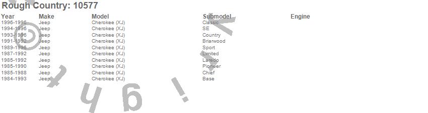 Below is an abbreviated list of applications for the Quarter Panel Armor.Cherokee (XJ), Jeep, 1996, 1995, 1994, 1993, 1992, 1991, 1990, 1989, 1988, 1987, 1986, 1985, 1984