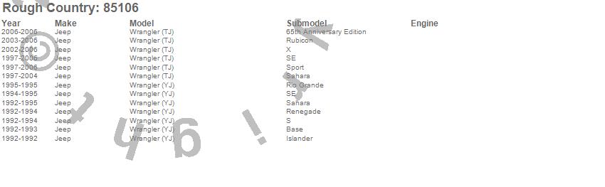 Brand: Rough CountryPart Number: 85106Top-Soft Type: Easy To Install - Durable UV Resistant Fabric - No special Tools Needed - BlackUPC: 843030143114