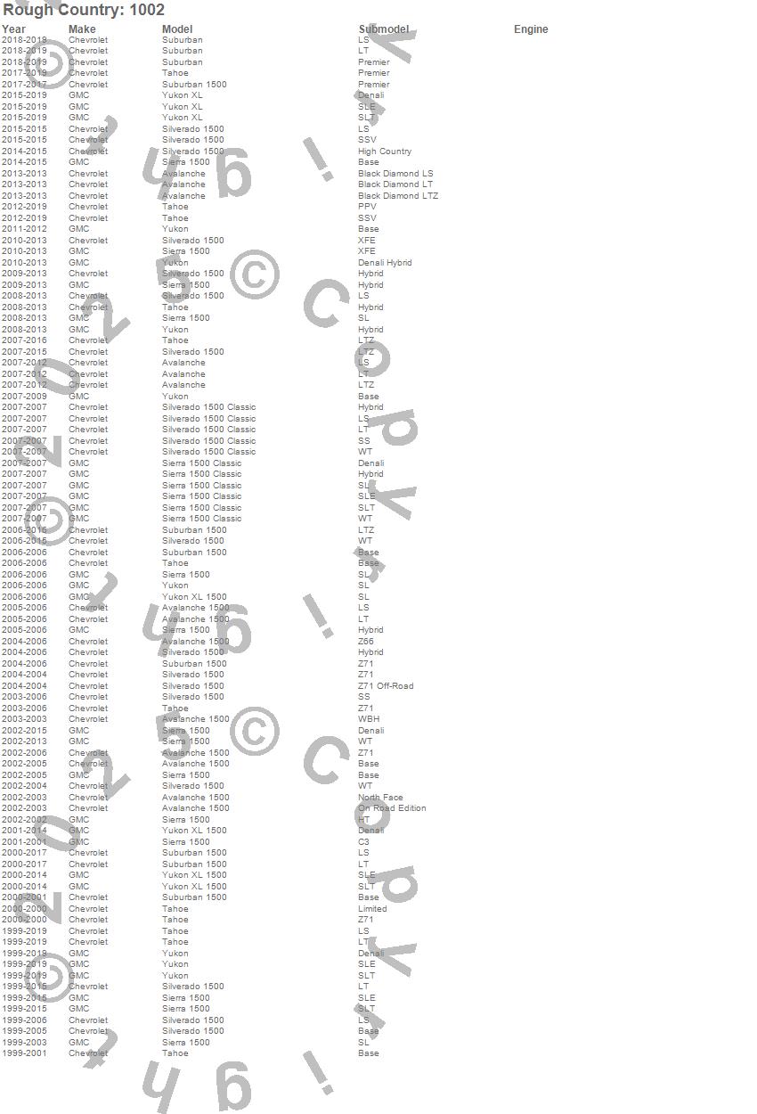 Below is an abbreviated list of applications for the Cam Plate Kit.Avalanche, Avalanche 1500, Sierra 1500, Sierra 1500 Classic, Silverado 1500, Silverado 1500 Classic, Suburban, Suburban 1500, Tahoe, Yukon, Yukon XL, Yukon XL 1500, Chevrolet, GMC, 2019, 2018, 2017, 2016, 2015, 2014