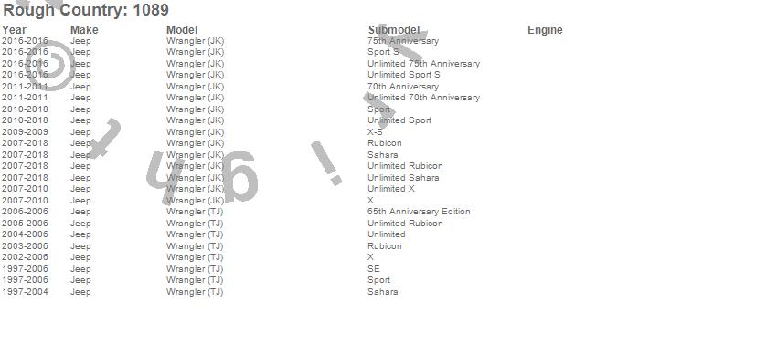 Brand: Rough CountryPart Number: 1089Shock Absorber Adapter Bracket Type: For Rear Shocks - Incl. Eliminator Brackets - Shock Sleeves - HardwareUPC: 843030100940