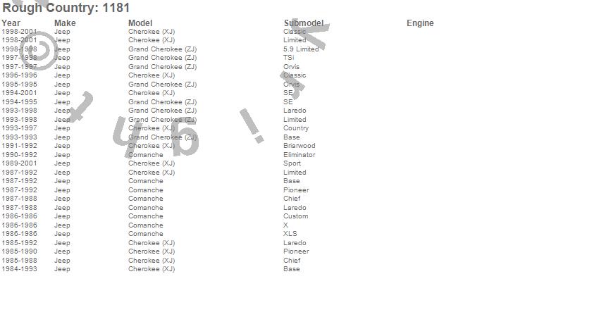 Brand: Rough CountryPart Number: 1181Track Bar Type: Incl. Brackets and Hardware - 1.25 in. Dia.UPC: 843030101756
