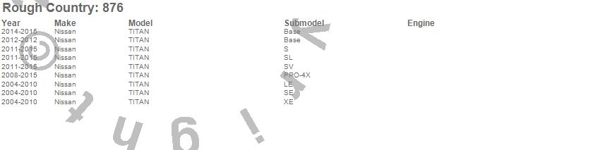 Below is an abbreviated list of applications for the Traction Bar Kit.TITAN, Nissan, 2015, 2014, 2013, 2012, 2011, 2010, 2009, 2008, 2007, 2006, 2005, 2004