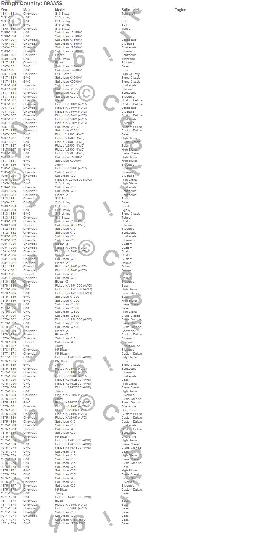 Below is an abbreviated list of applications for the Stainless Steel Brake Lines.Blazer, Blazer K5, Jimmy, K10 Pickup, K10 Suburban, K15 Suburban, K15/K1500 Suburban, K1500 Pickup, K1500 Suburban, K20 Pickup, K20 Suburban, K25 Pickup, K25 Suburban, K25/K2500 Suburban, K2500 Pickup, K2500 Suburban, K5 Blazer, S10 Blazer, S15 Jimmy, V10 Pickup