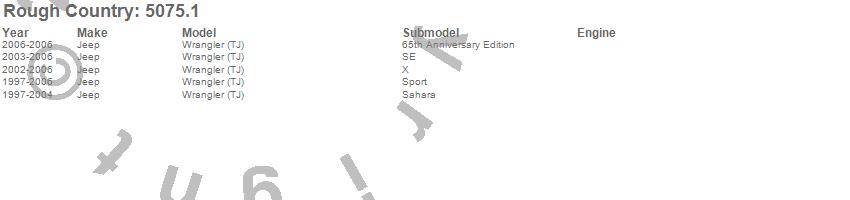 Brand: Rough CountryPart Number: 5075.1Drive Shaft Type: Rear - For 4-6 in. Lift - Incl. Flanges - Yokes - Hardware - Collapsed Length 14.25 in. - Extended Length 17.75 in. - Fits Dana 35 w/Auto Trans - Dana 44 w/Man. TransUPC: 843030110482