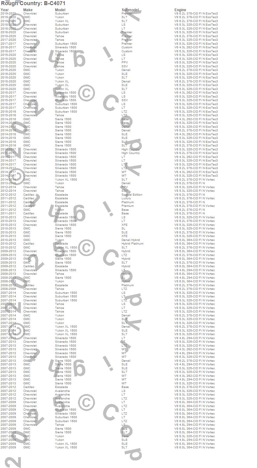 Below is an abbreviated list of applications for the Black Bull Bar w/ Integrated Black Series 20-inch LED Light Bar.Avalanche, Escalade, Sierra 1500, Silverado 1500, Suburban, Suburban 1500, Tahoe, Yukon, Yukon XL, Yukon XL 1500, Cadillac, Chevrolet, GMC, 2020, 2019, 2018, 2017, 2016, 2015, 2014
