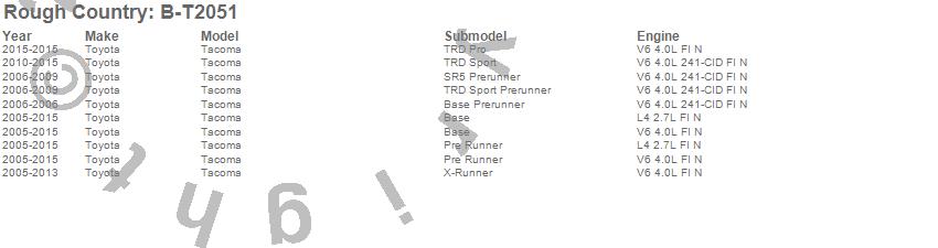 Below is an abbreviated list of applications for the Black Bull Bar.Tacoma, Toyota, 2015, 2014, 2013, 2012, 2011, 2010, 2009, 2008, 2007, 2006, 2005