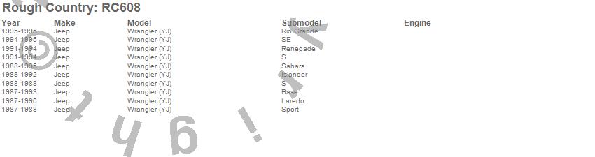 Below is an abbreviated list of applications for the Body Lift Kit.Wrangler (YJ), Jeep, 1995, 1994, 1993, 1992, 1991, 1990, 1989, 1988, 1987