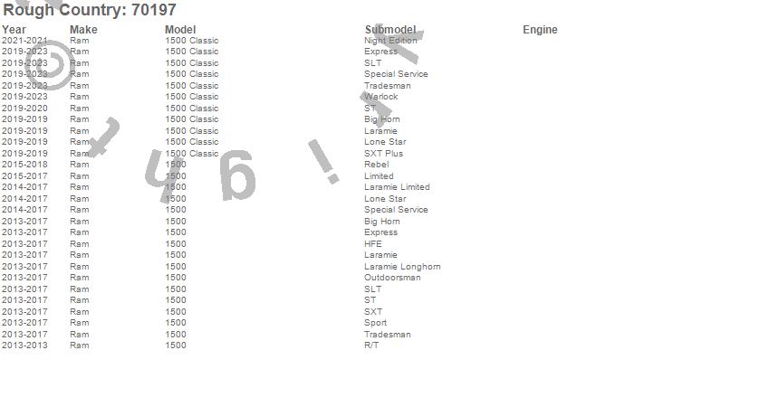 Below is an abbreviated list of applications for the Laser-Cut Mesh Replacement Grille.1500, 1500 Classic, Ram, 2023, 2022, 2021, 2020, 2019, 2018, 2017, 2016, 2015, 2014, 2013