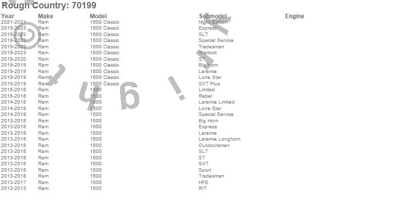 Below is an abbreviated list of applications for the Laser-Cut Mesh Replacement Grille.1500, 1500 Classic, Ram, 2023, 2022, 2021, 2020, 2019, 2018, 2017, 2016, 2015, 2014, 2013