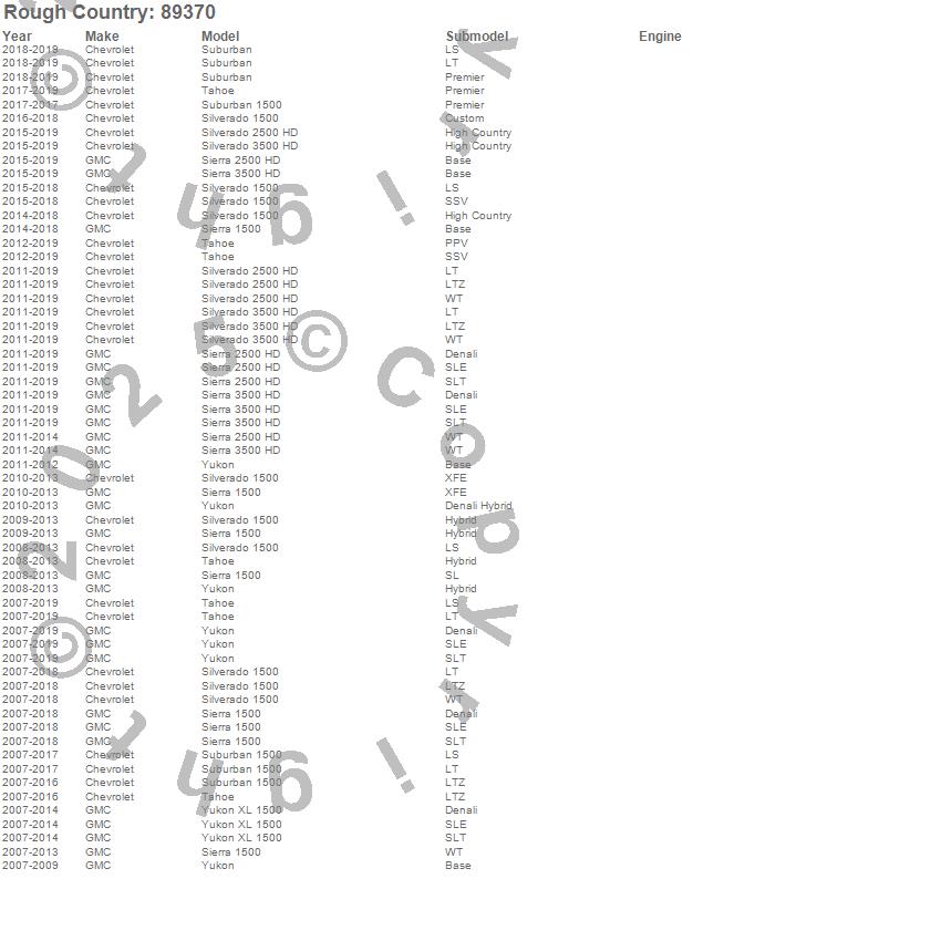 Below is an abbreviated list of applications for the Stainless Steel Brake Lines.Sierra 1500, Sierra 2500 HD, Sierra 3500 HD, Silverado 1500, Silverado 2500 HD, Silverado 3500 HD, Suburban, Suburban 1500, Tahoe, Yukon, Yukon XL 1500, Chevrolet, GMC, 2019, 2018, 2017, 2016, 2015, 2014, 2013