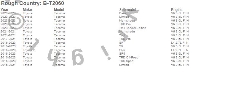 Below is an abbreviated list of applications for the Black Bull Bar.Tacoma, Toyota, 2023, 2022, 2021, 2020, 2019, 2018, 2017, 2016