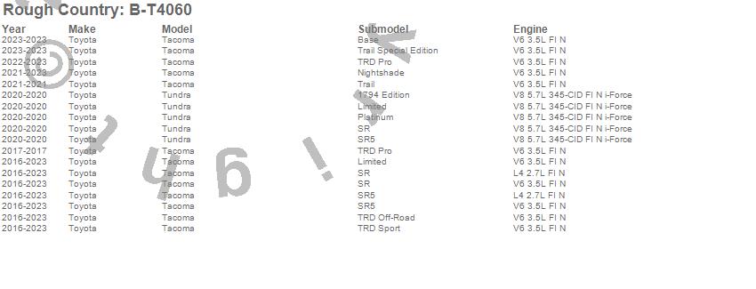 Below is an abbreviated list of applications for the Black Bull Bar w/ Integrated Black Series 20-inch LED Light Bar.Tacoma, Tundra, Toyota, 2023, 2022, 2021, 2020, 2019, 2018, 2017, 2016