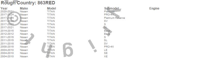 Below is an abbreviated list of applications for the Leveling Strut Extensions.TITAN, Nissan, 2024, 2023, 2022, 2021, 2020, 2019, 2018, 2017, 2015, 2014, 2013, 2012, 2011, 2010, 2009, 2008, 2007, 2006