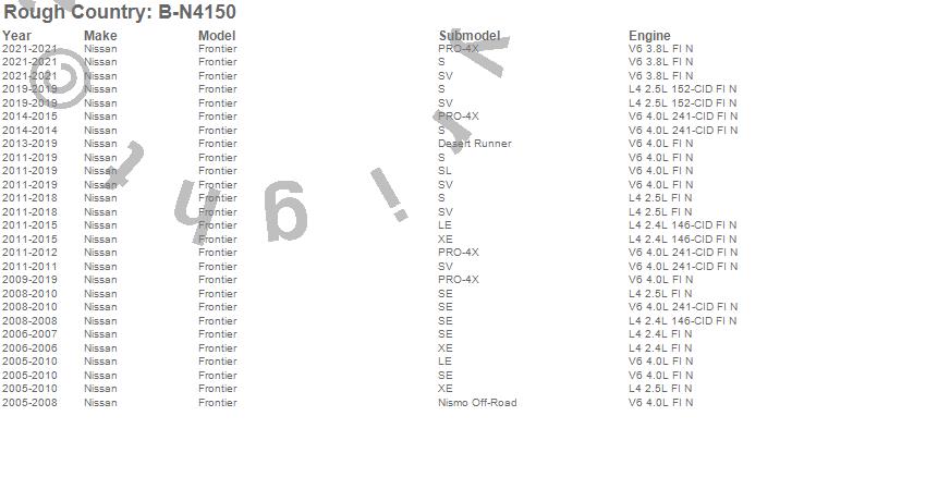 Brand: Rough CountryPart Number: B-N4150Bull Bar Type: Incl. License Plate Adapter BracketUPC: 843030146443