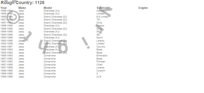 Below is an abbreviated list of applications for the Sway Bar Quick Disconnect.Cherokee (XJ), Comanche, Grand Cherokee (ZJ), Jeep, 1998, 1997, 1996, 1995, 1994, 1993, 1992, 1991, 1990, 1989, 1988, 1987, 1986