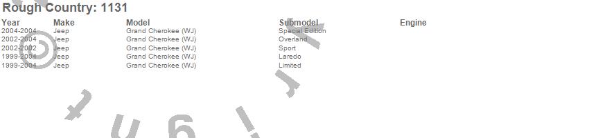 Below is an abbreviated list of applications for the Sway Bar Quick Disconnect.Grand Cherokee (WJ), Jeep, 2004, 2003, 2002, 2001, 2000, 1999