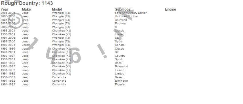Below is an abbreviated list of applications for the Heavy Duty Tie Rod Kit.Cherokee (XJ), Comanche, Wrangler (TJ), Jeep, 2006, 2005, 2004, 2003, 2002, 2001, 2000, 1999, 1998, 1997, 1996, 1995, 1994, 1993, 1992, 1991