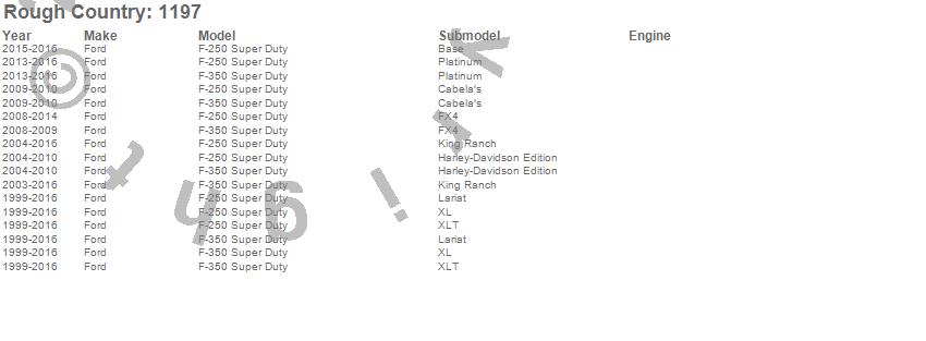 Below is an abbreviated list of applications for the Carrier Bearing Drop Kit.F-250 Super Duty, F-350 Super Duty, Ford, 2016, 2015, 2014, 2013, 2012, 2011, 2010, 2009, 2008, 2007, 2006, 2005, 2004, 2003, 2002, 2001, 2000