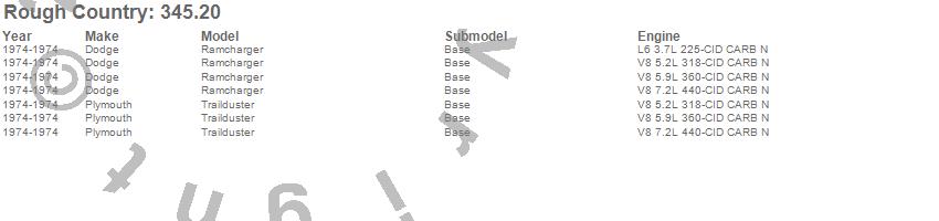 Below is an abbreviated list of applications for the Suspension Lift Kit w/Shocks.Ramcharger, Trailduster, Dodge, Plymouth, 1974